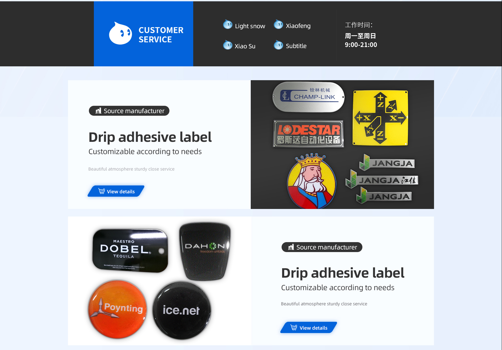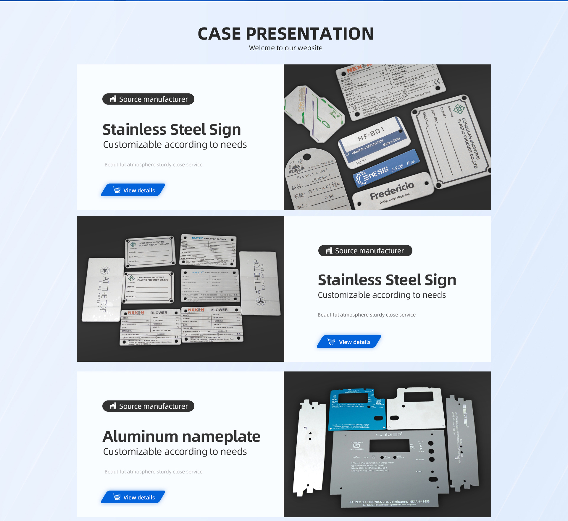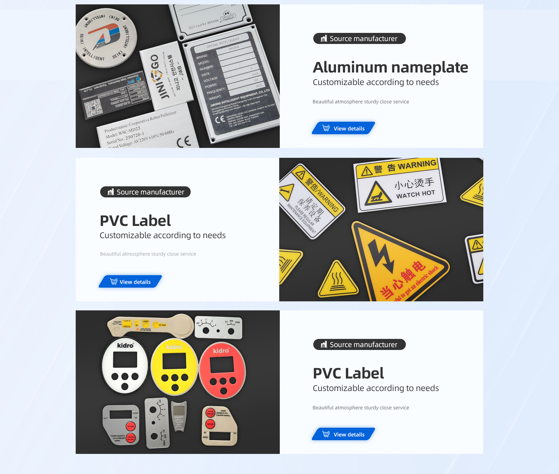 Productos principales:Placas de metal, paneles de teclado, señales de advertencia acrílicas, artesanías acrílicas, pegatinas de PVC